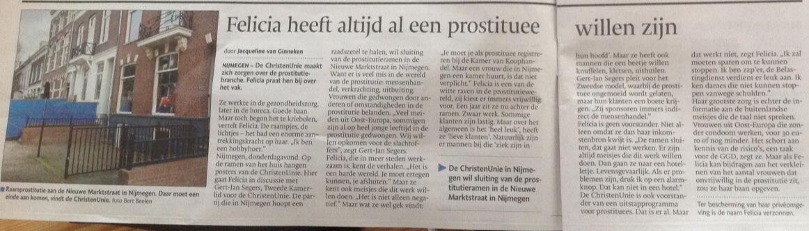 Ik heb ook geen tijd om het radio-interview met Dina Siegel te bespreken. Dat is jammer, want ze komt met goeie dingen, maar toch heb ik natuurlijk weer wat te zeiken. Jullie moeten het zelf maar even luisteren. Het is niet te lang, en het geeft wel wat om over na te denken. Vooral als je het bekijkt tegen dit gedoe over een Haagse wijk die een seksclub weg wil pesten, of het gelul over de nucleaire top en wat dat voor invloed op de business heeft. Eigenlijk merkt alleen de high class daar wat van.